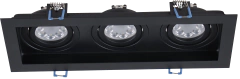 Embutido orientable 3 luces para dicroica GU10 construido en chapa. Antideslumbrante.