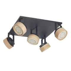 Plafón techo LINEA FIJI base cuadrada cabezales de madera nórdico 5 luces AR111 VIGNOLO